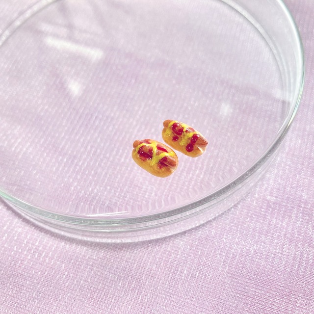 朝ごパンにピッタリなソーセージパンです。 ソーセージはパリッと焼いて、ケチャップとマスタードをトッピング! 本物の12分の1サイズですので小さなお友達へのプレゼントにもいいですね◎ 素材 軽量粘土・アクリル系光硬化樹脂・ニス等 サイズ 約1.2センチ ※食べ物ではございません。本当に食べないでください。お子様が誤飲しないようご注意下さい。飾ってお楽しみいただくか、お手持ちのお人形に与えて下さい。 ※一つ一つ手作業で仕上げたハンドメイド商品となりますので多少のデザインの違いがあります。ご了承下さい。 ※強い力を加えたり引っ張ったりすると破損する恐れがあります。優しく扱ってください。 ◆商品の保管方法について ・レジンは経年により黄変が生じます。直射日光、高温多湿を避けてのご利用・保管をお願いします。 ・摩擦や経年、水濡れの放置などにより変色する場合がございます。 ・長く使用していただく為に、使用後やお手入れの際は乾いた柔らかい布などで優しく拭いてからの保管をおすすめします。