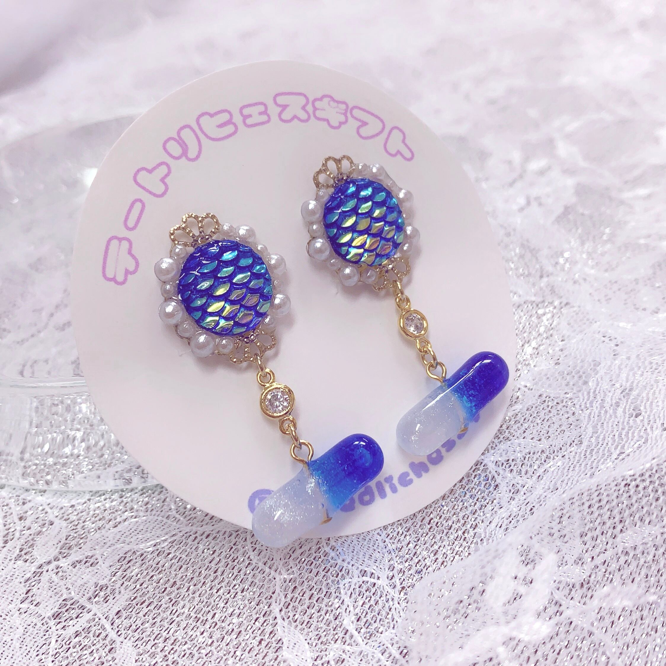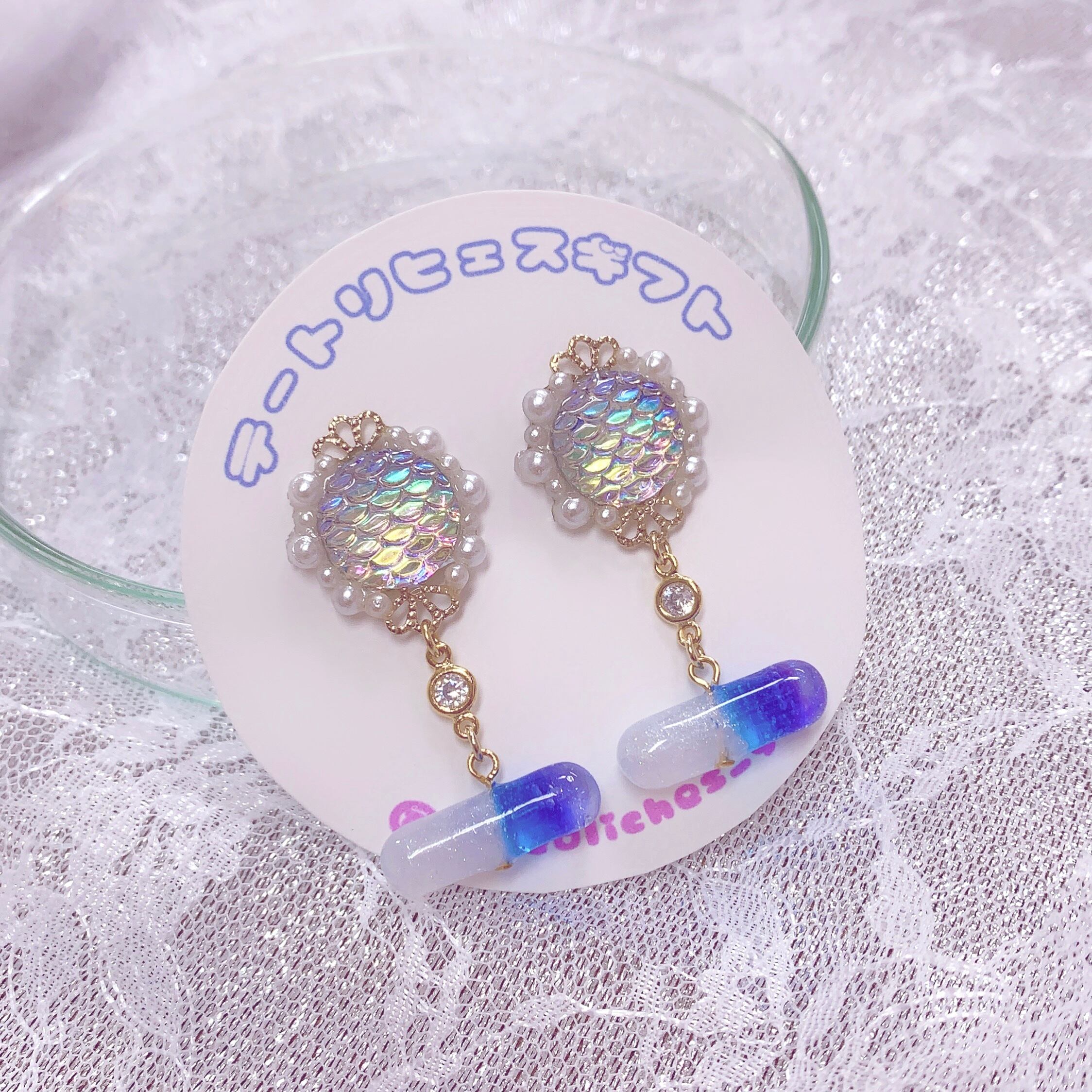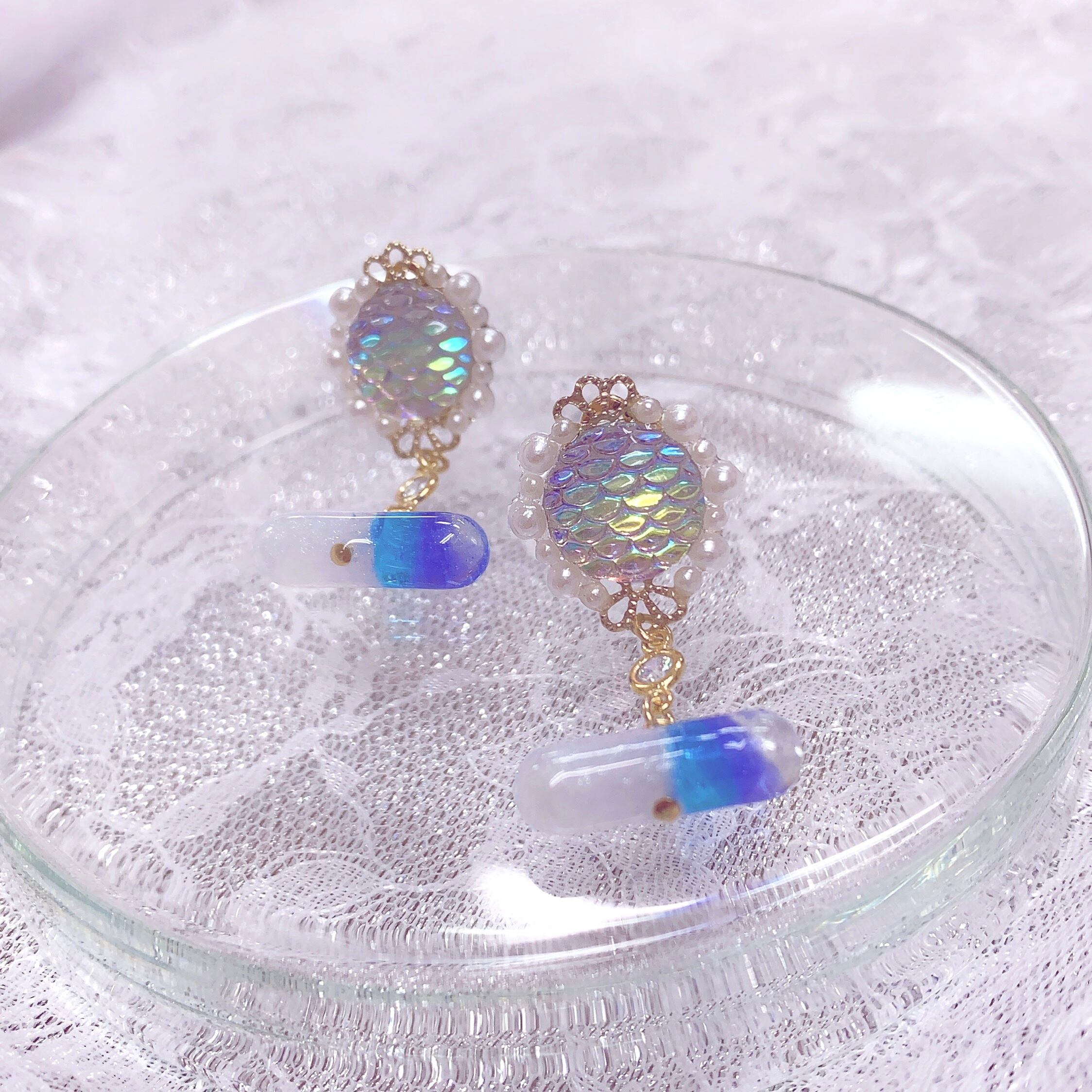 幻の鱗を使用した万能お薬のイヤリング。