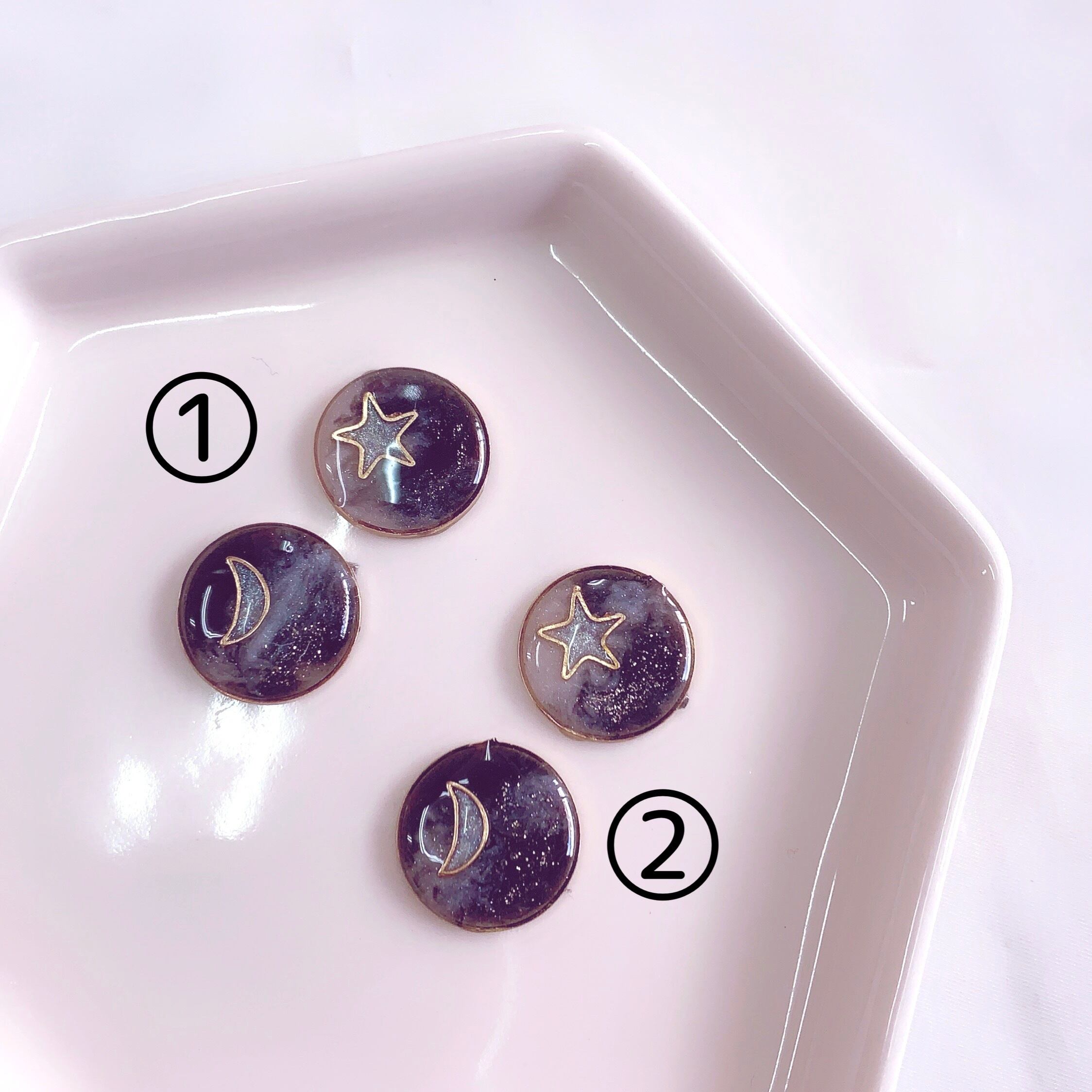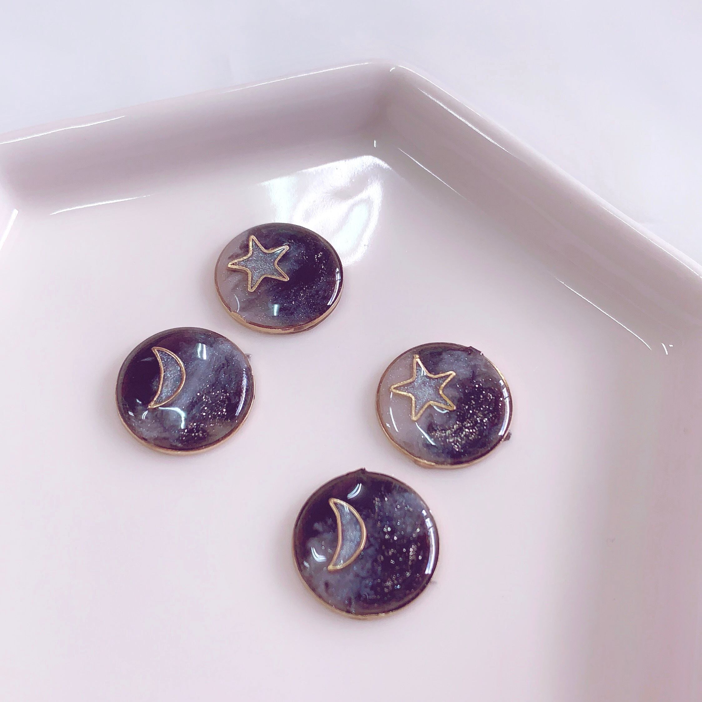 月と星が宇宙に浮かんだピアス・イヤリングです。
