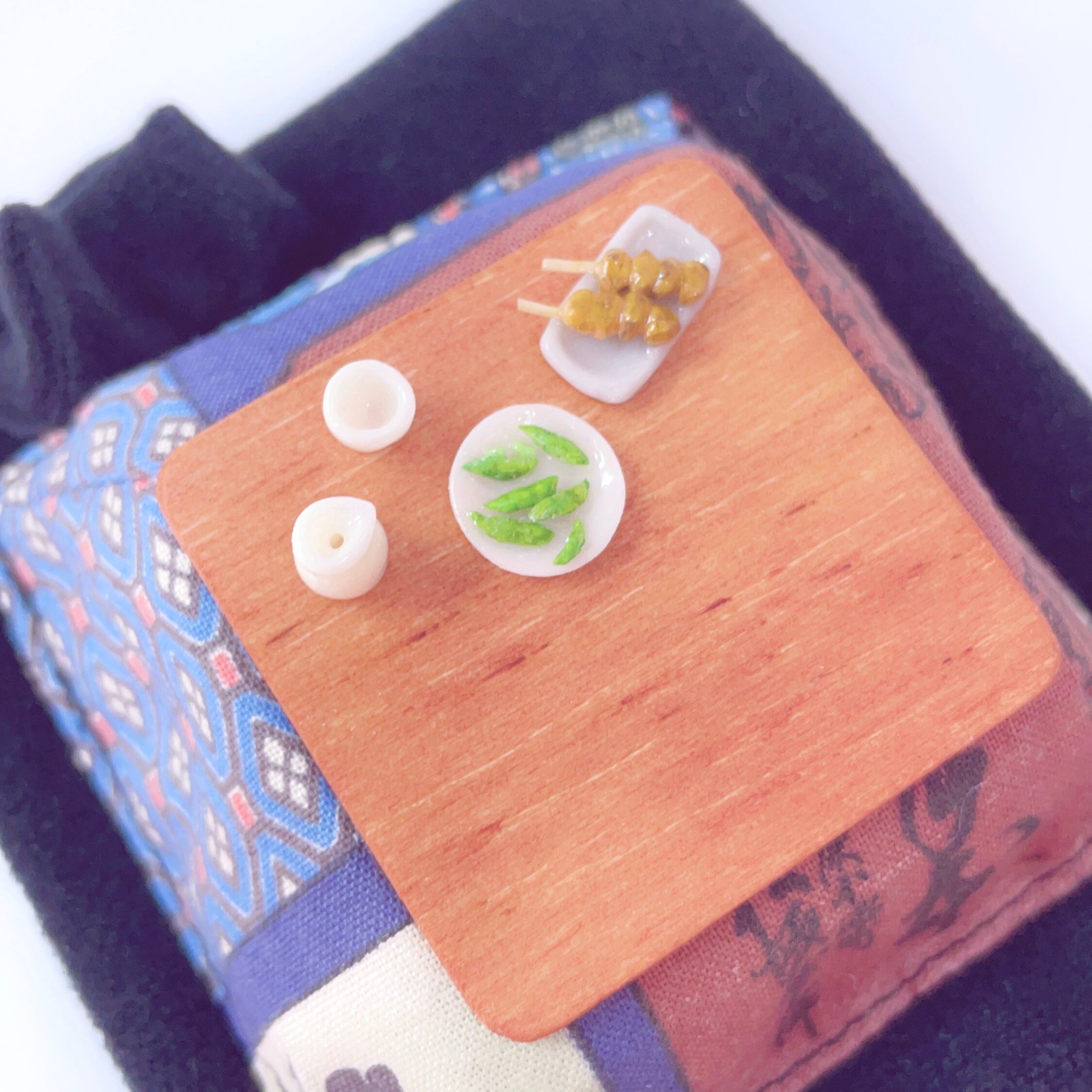 お相撲とかドキュメンタリーをよく見てそうなお晩酌セット&炬燵布団が渋くてよい◎