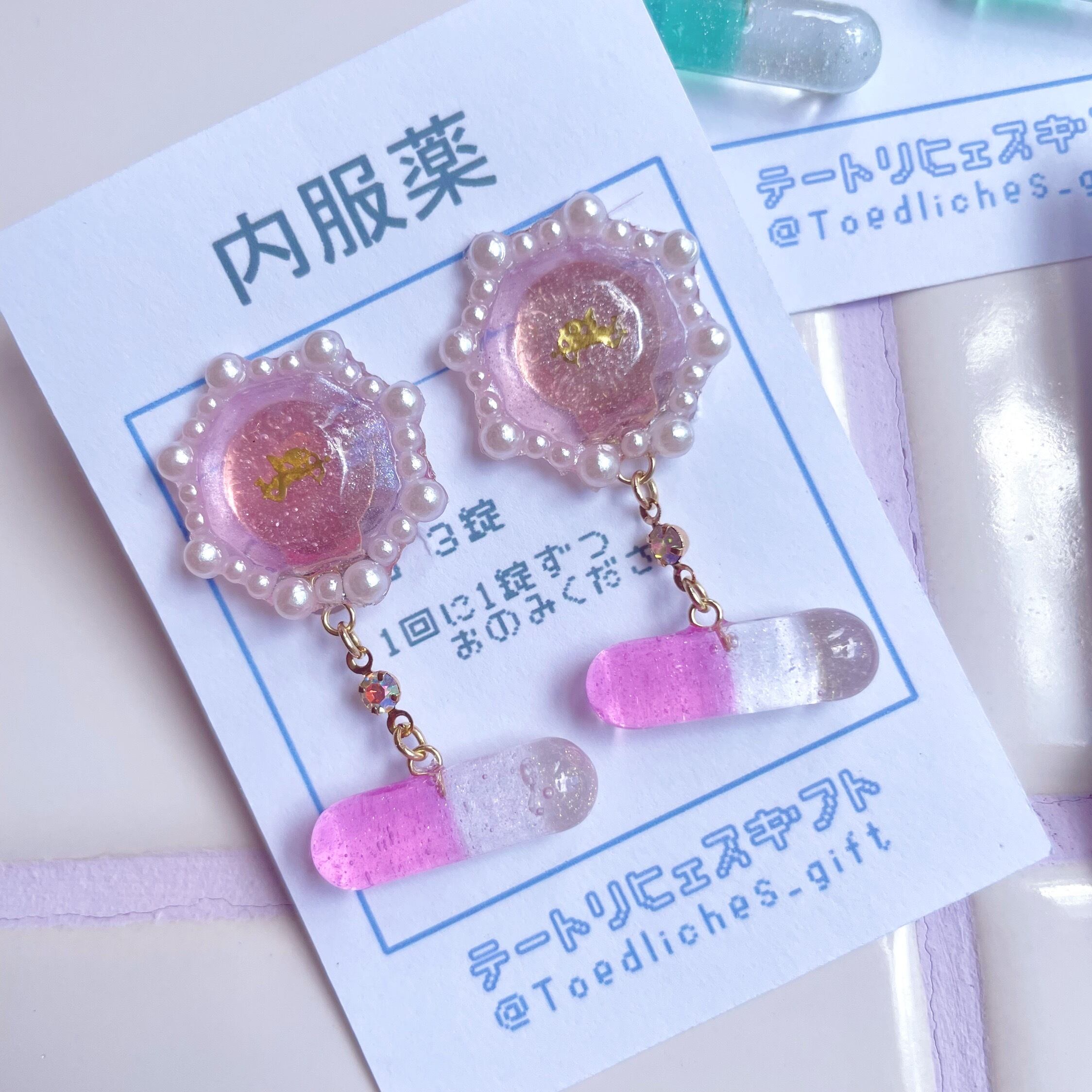 キューピッドにお願いが叶うよう祈りを込めて作ったお薬イヤリングです♪