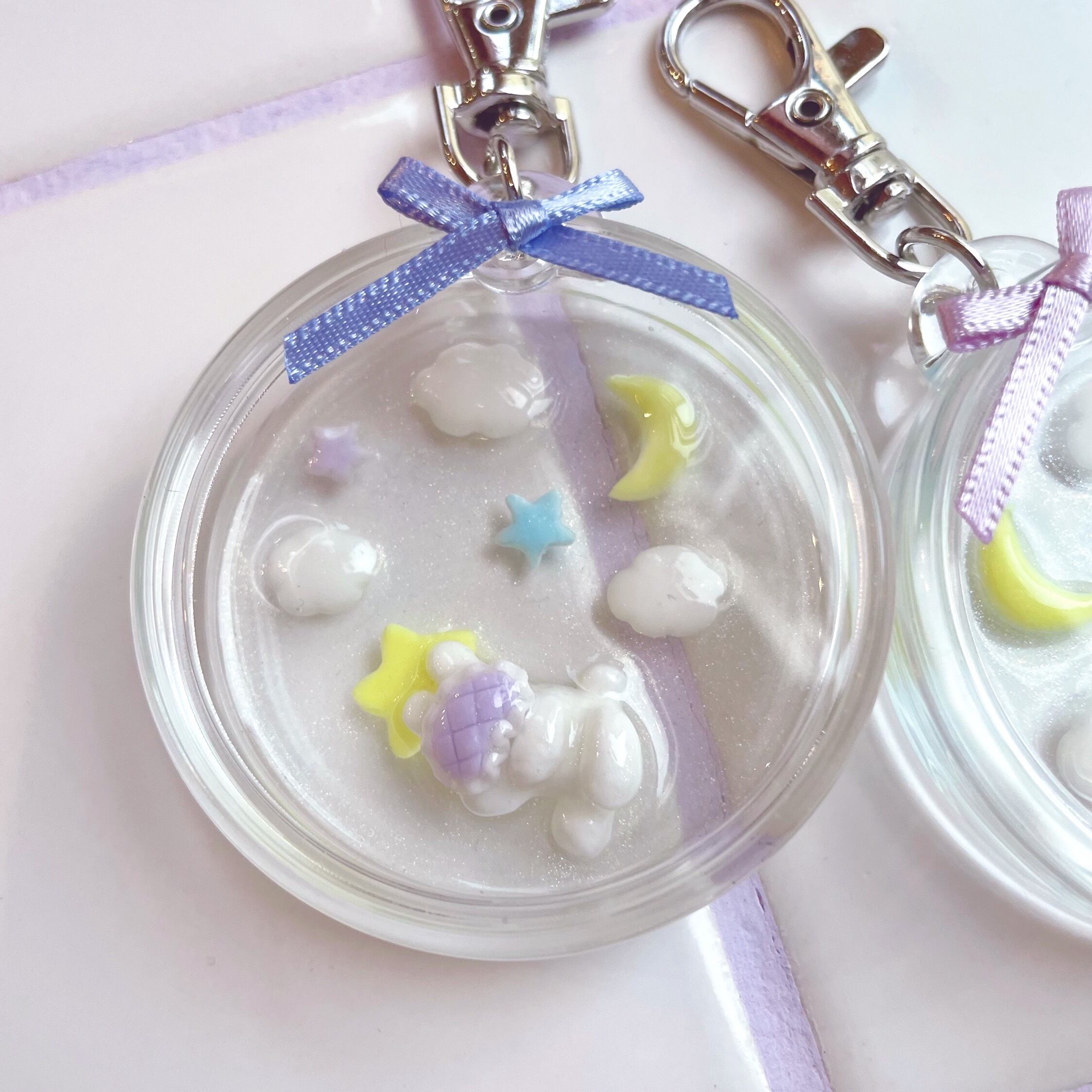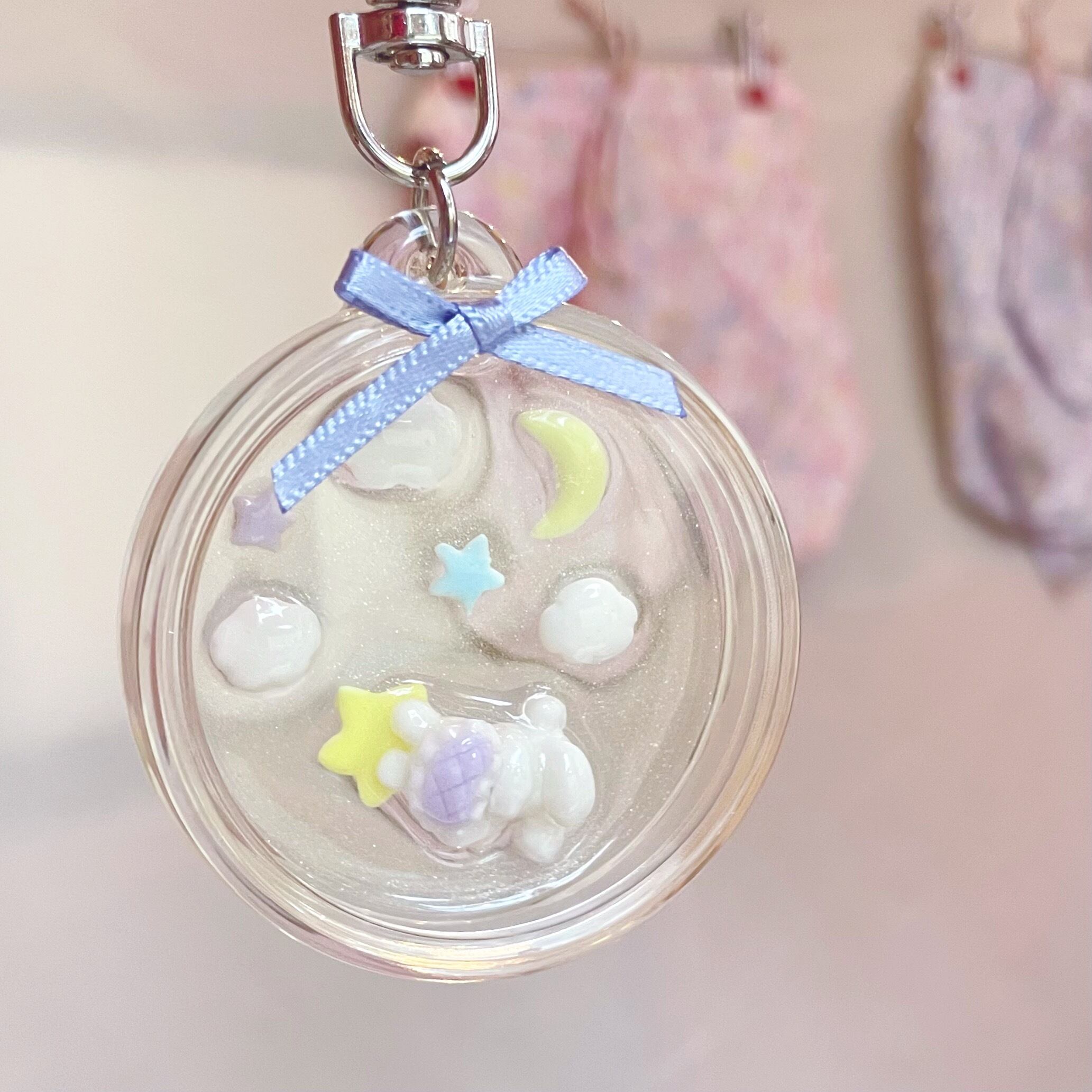 お星さまの枕できらきらの夢を見るミミ美ちゃんのキーホルダー✧°+