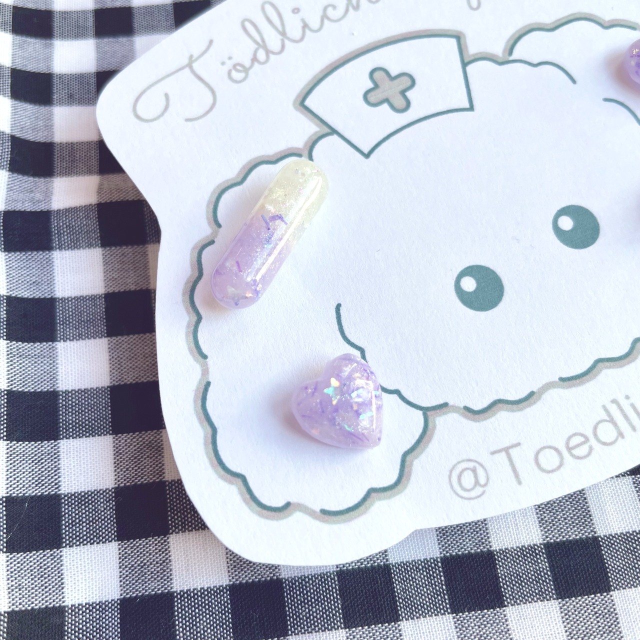 おくすりとハートの2ペアのピアスがセットになったおめかしセット♡