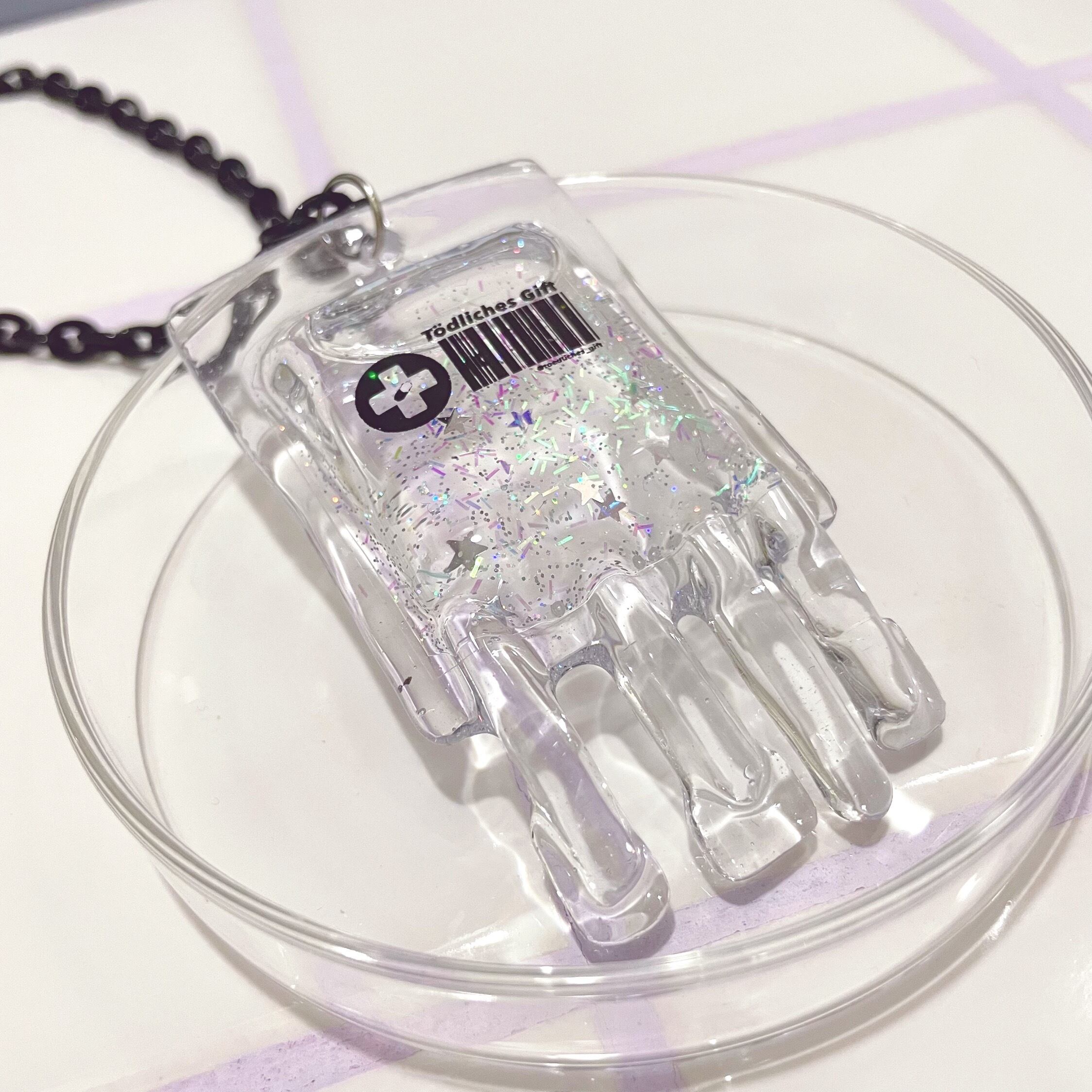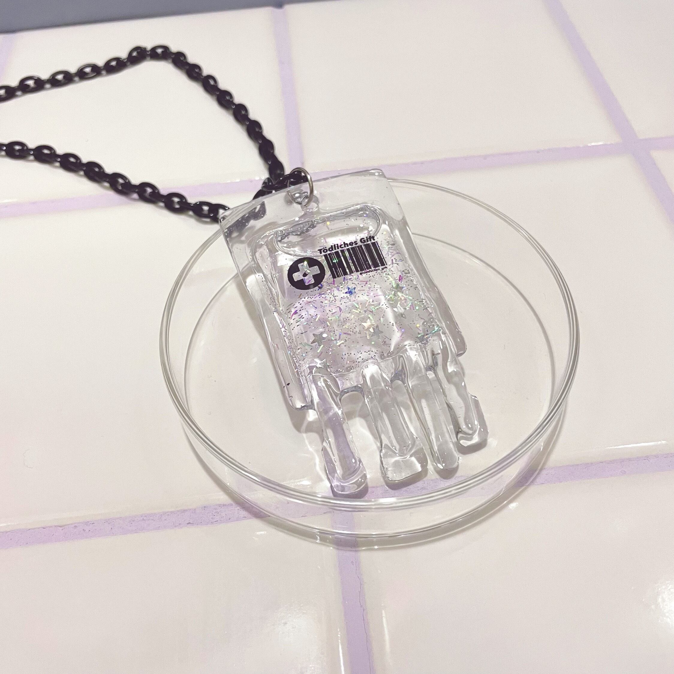 色々なキラキラパーツがゆらゆらと浮かぶ輸血バッグネックレス♥