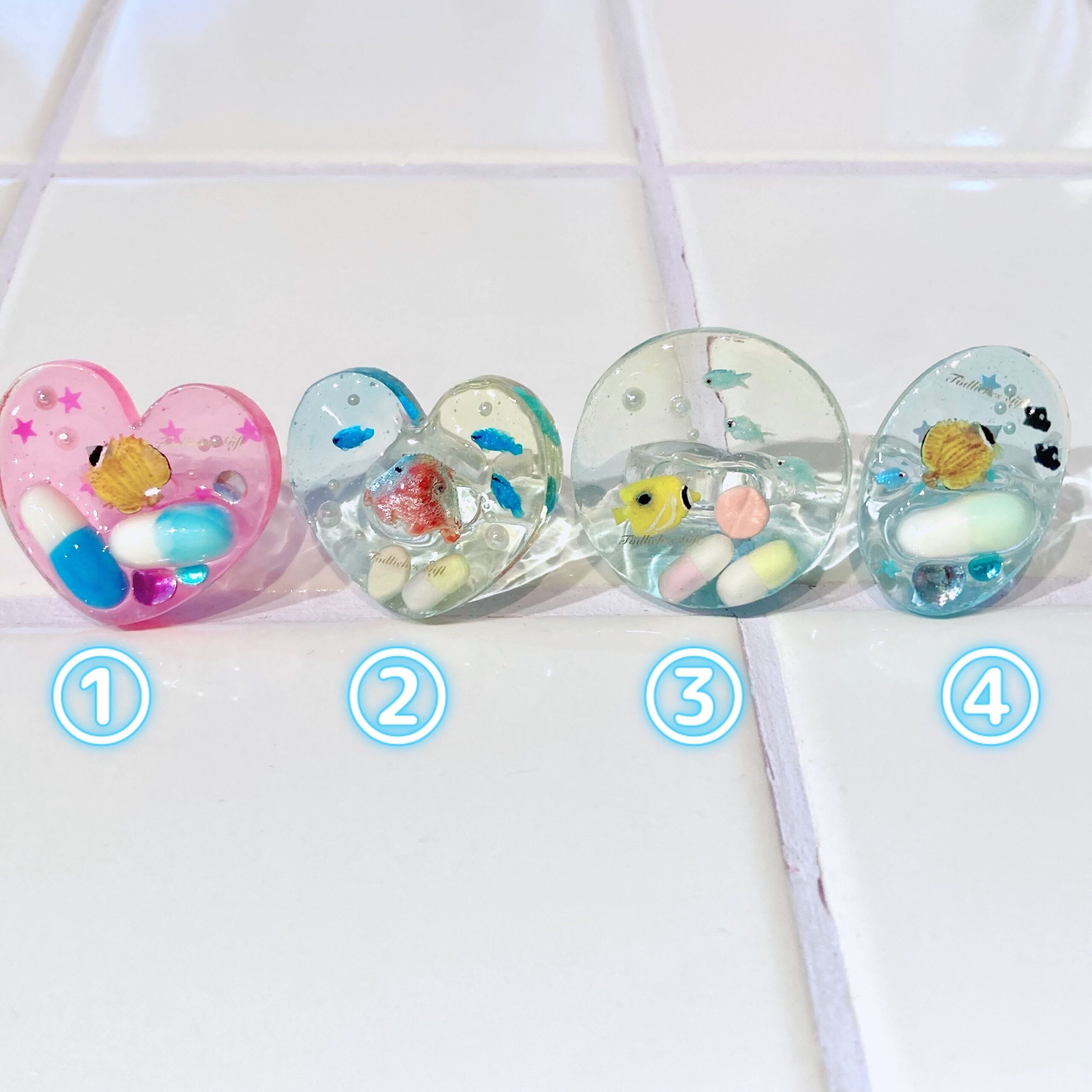 癒しの海水魚達を薬と共に指輪にあしらいました☆