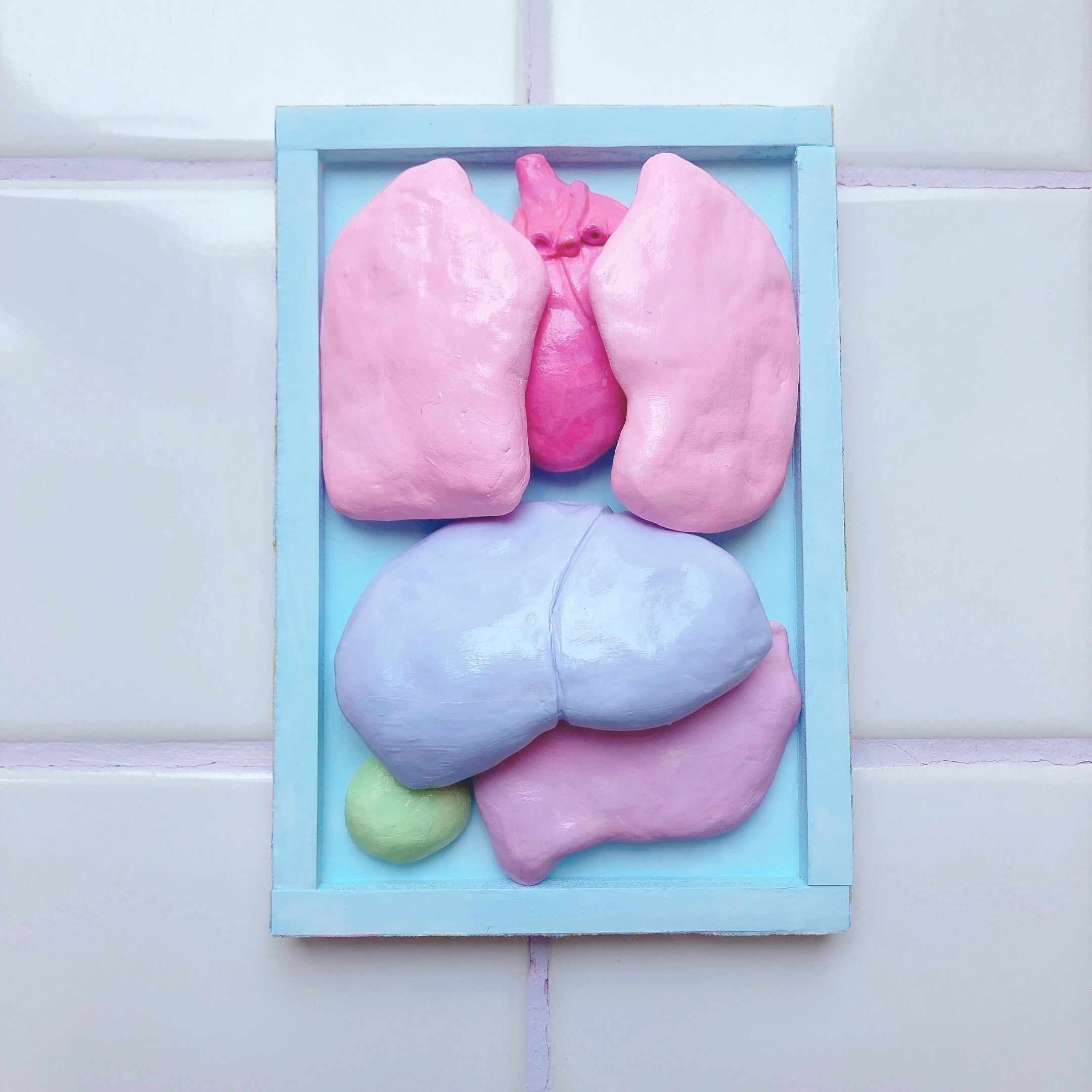 おもちゃ箱のような額に詰めたカラフル臓器のオブジェです☺︎