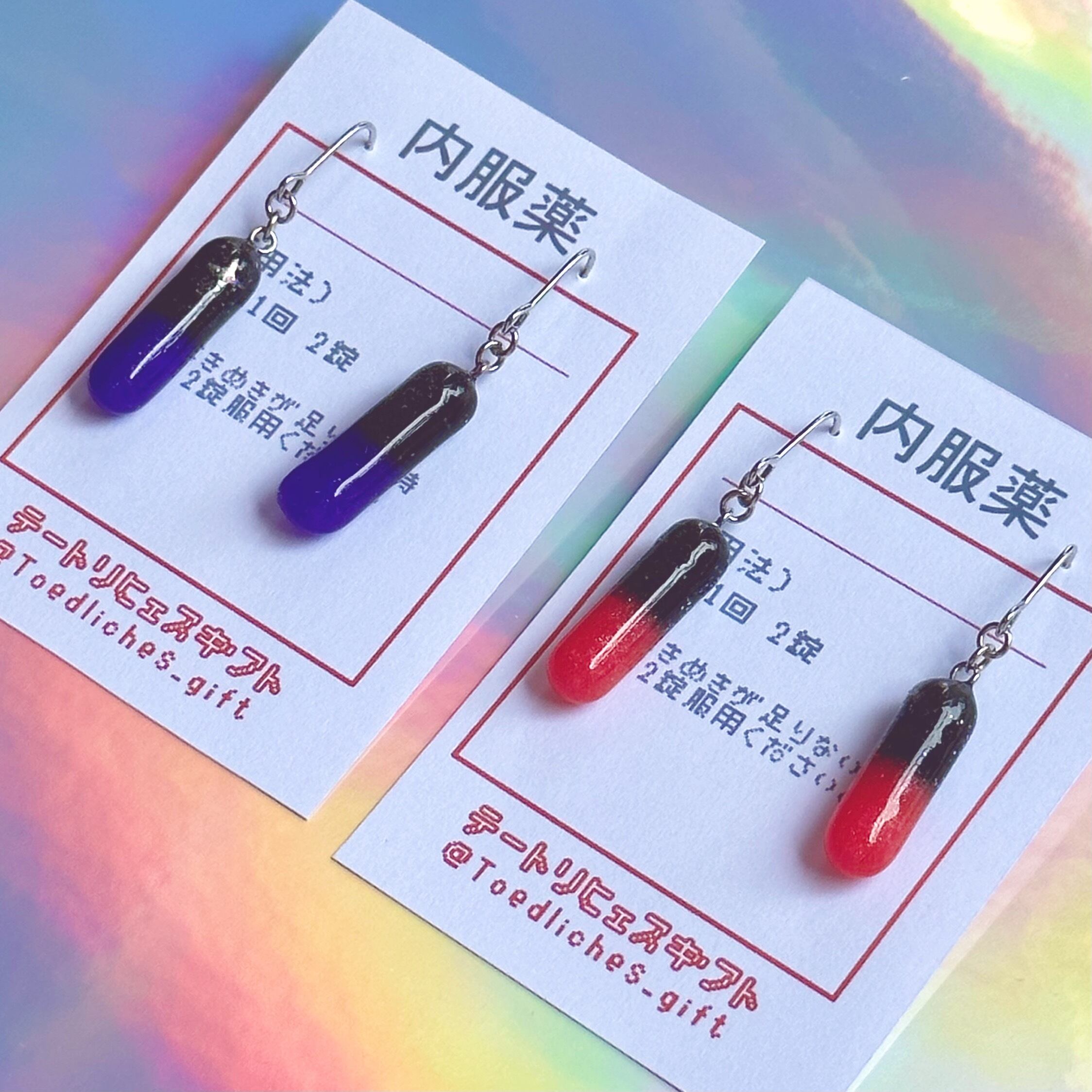 パープルとピンクを黒と組み合わせたダークなお薬ピアスです◎