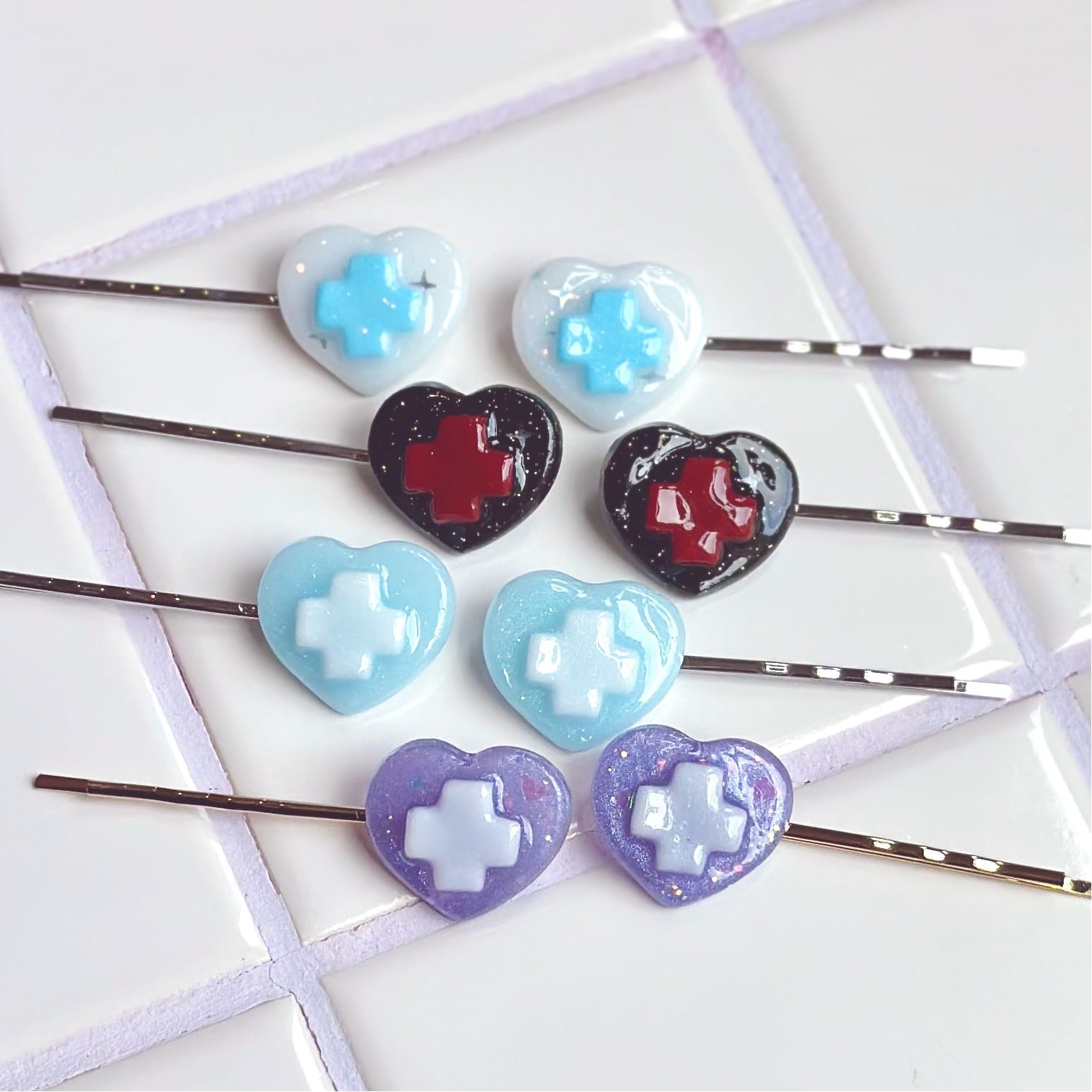 左右セットになったハート×十字のヘアピンです❤︎