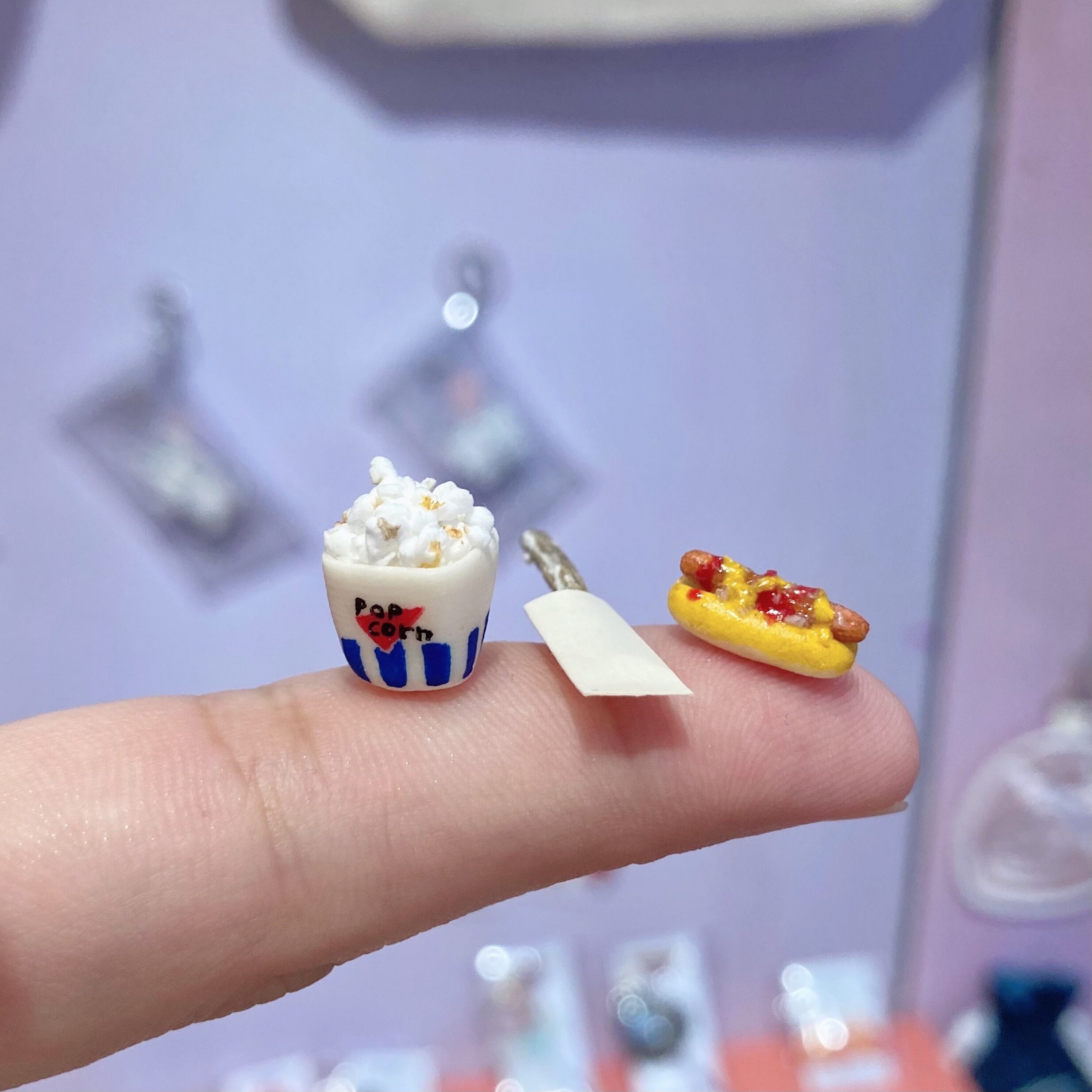 ミニチュアサイズ(約12分の1)のポップコーン、ホットドッグ、チュロス×3本のセットです✮